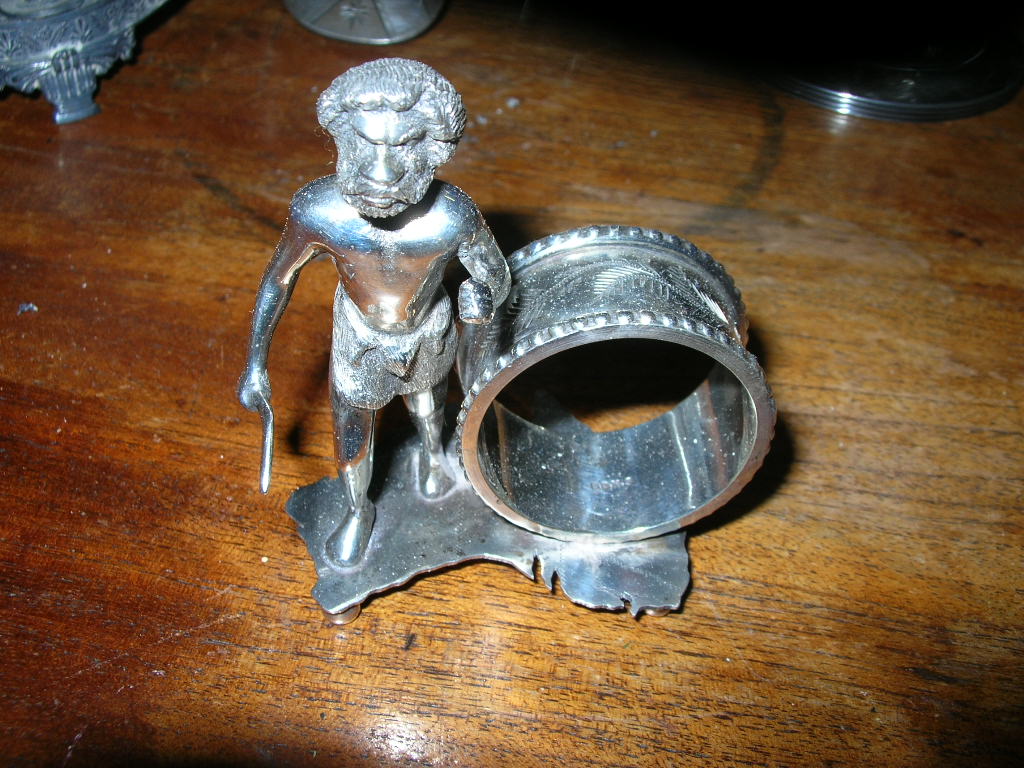 This figural napkin ring is an aboriginal man with a