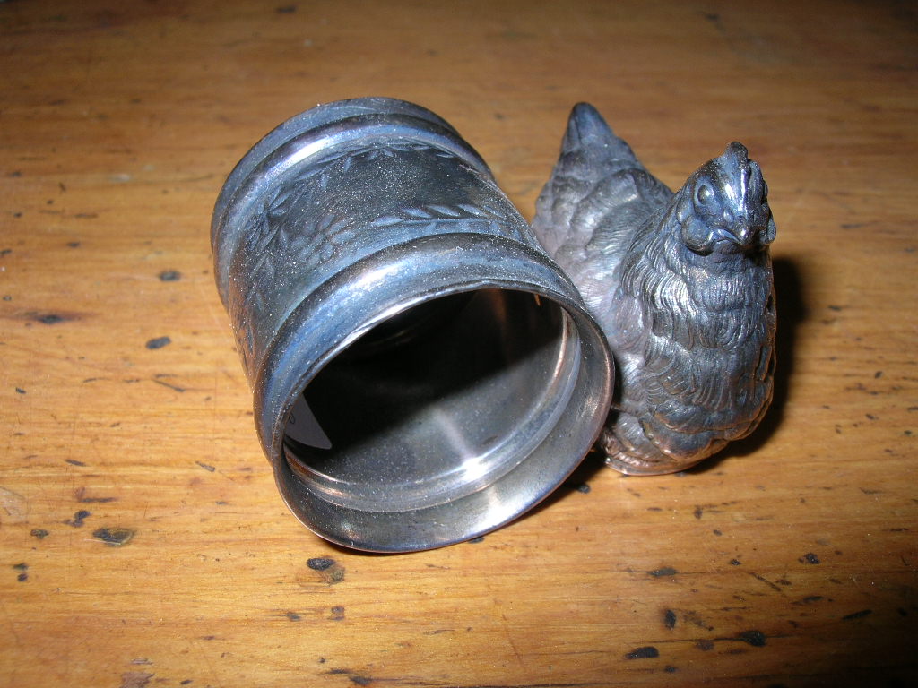 a most unusual chick and wishbone napkin ring in a base