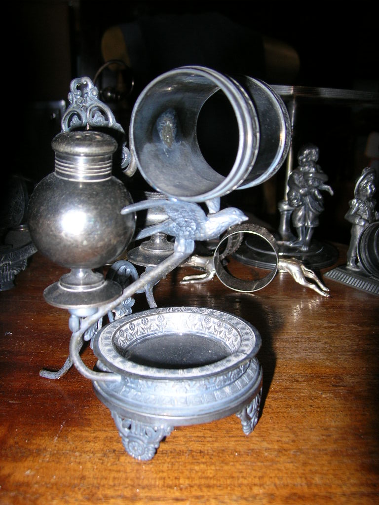 This is one of the most remarkable figural napkin ring combination sets I have ever seen.