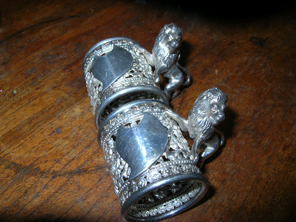 3 (one in pair below) x rampant lion rolling solid napkin ring with