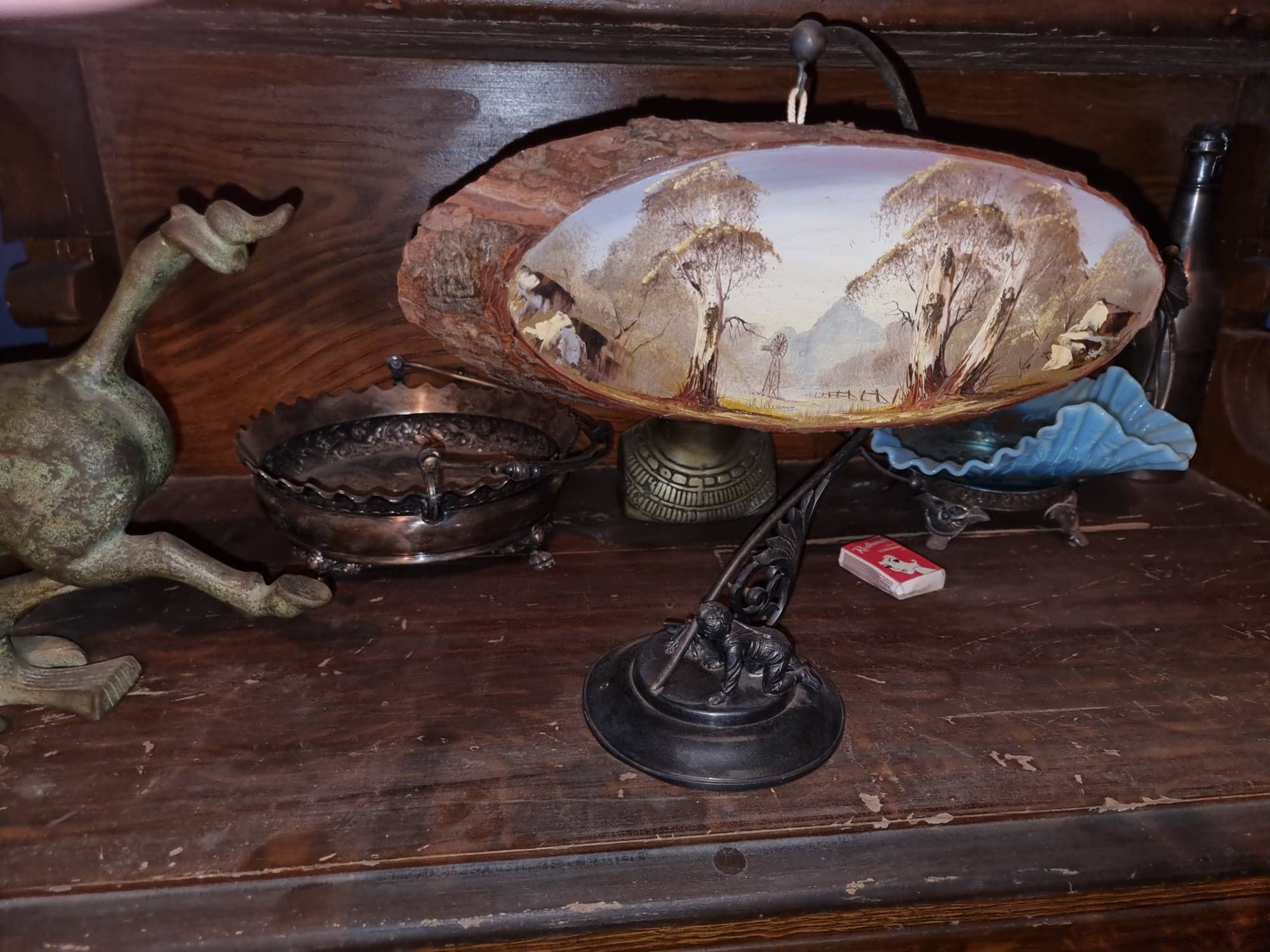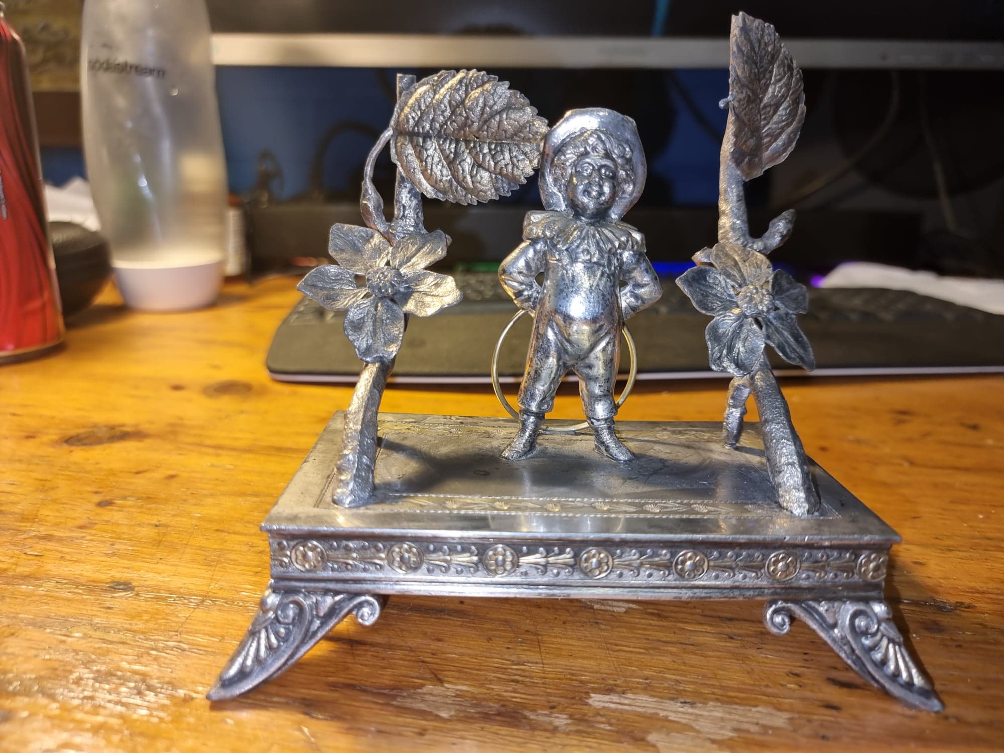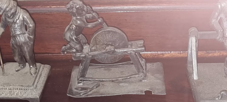 The item has a cherub sharpening a spear on a wheel. Btw, the wheel turns.