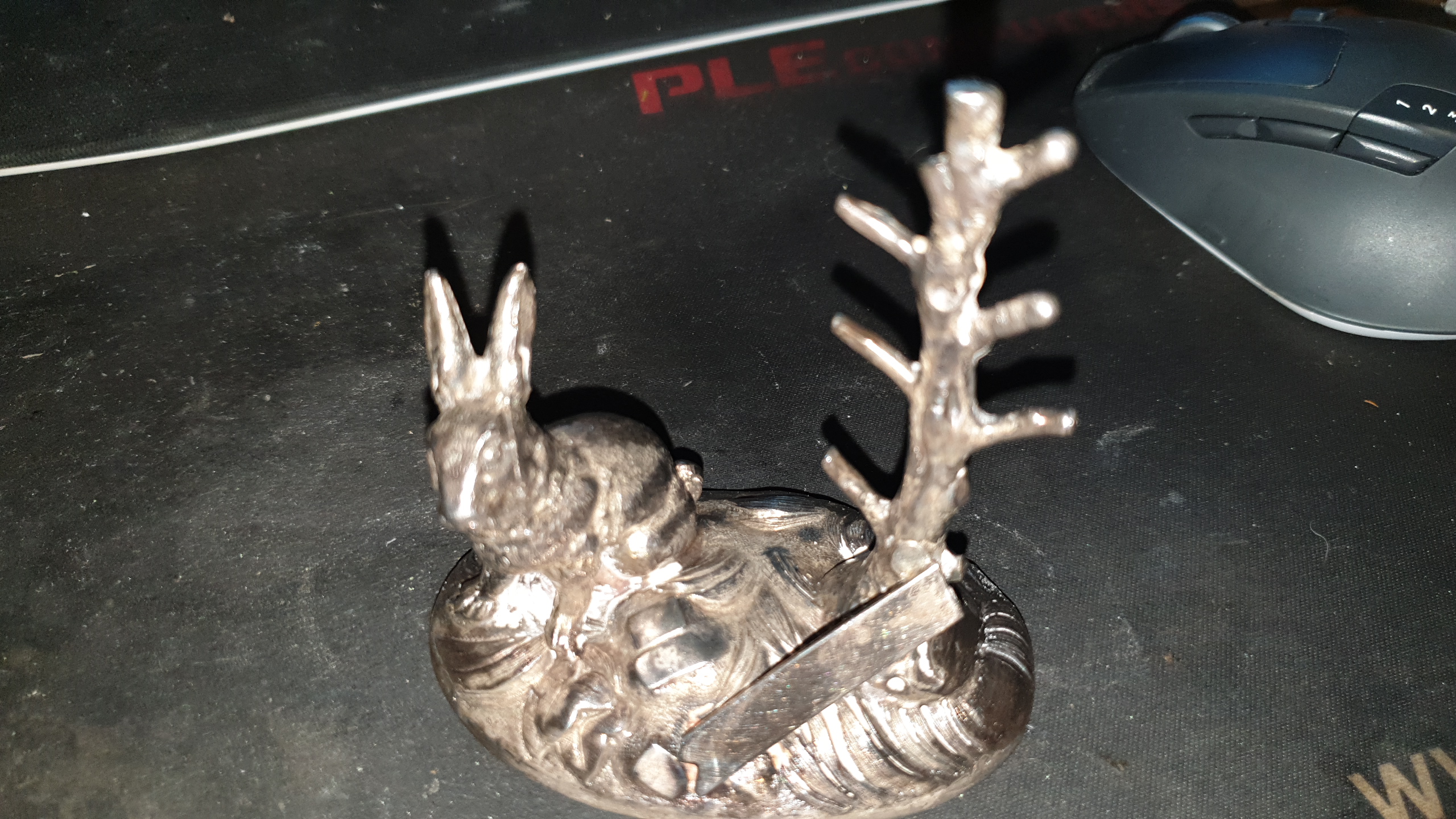 2 x A rabbit sits on a circular base with an ornate napkin holder.