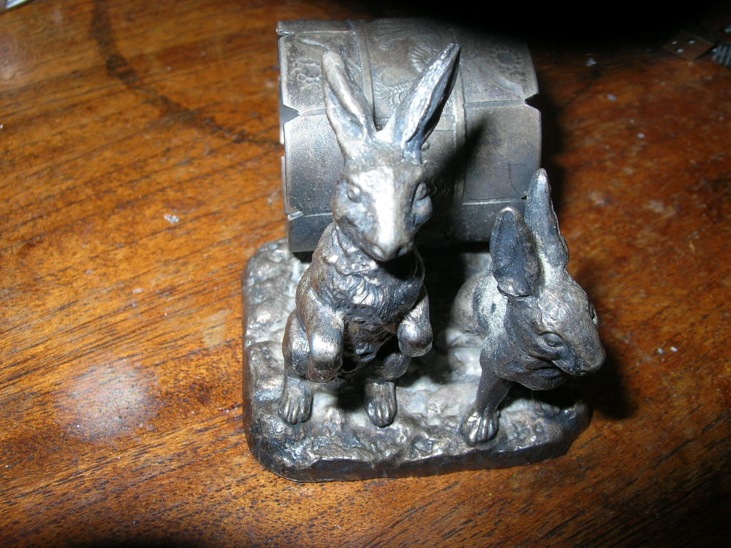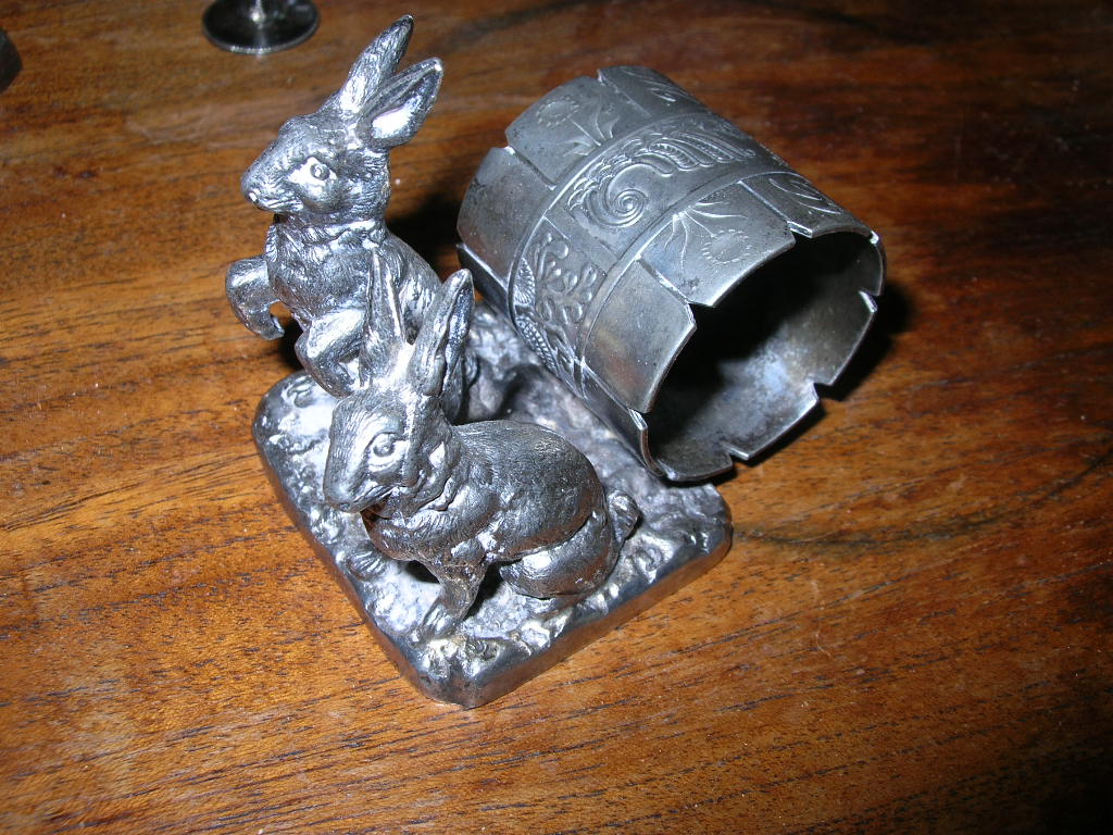 lot of figurals in the late 1800s/early 1900s) rabbit napkin ring.