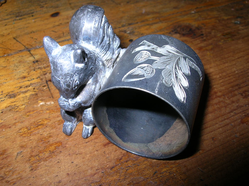 A lovely squirrel figural napkin ring. Unmarked as to maker and number.